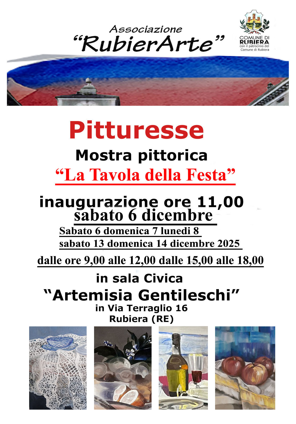 Inaugura sabato 6 dicembre alle ore 11 presso la Sala Civica Artemisia Gentileschi la mostra pittorica