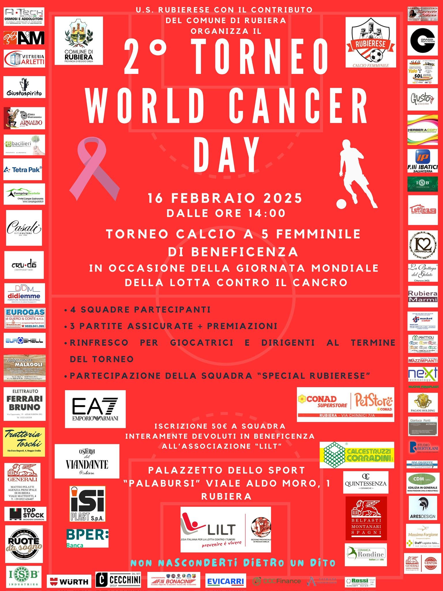 Torneo di calcio a 5 femminile di beneficenza in occasione della Giornata mondiale della lotta contro il cancro, con ricavato devoluto interamente alla Lilt (Lega Italiana per la Lotta contro i Tumori) di Reggio Emilia