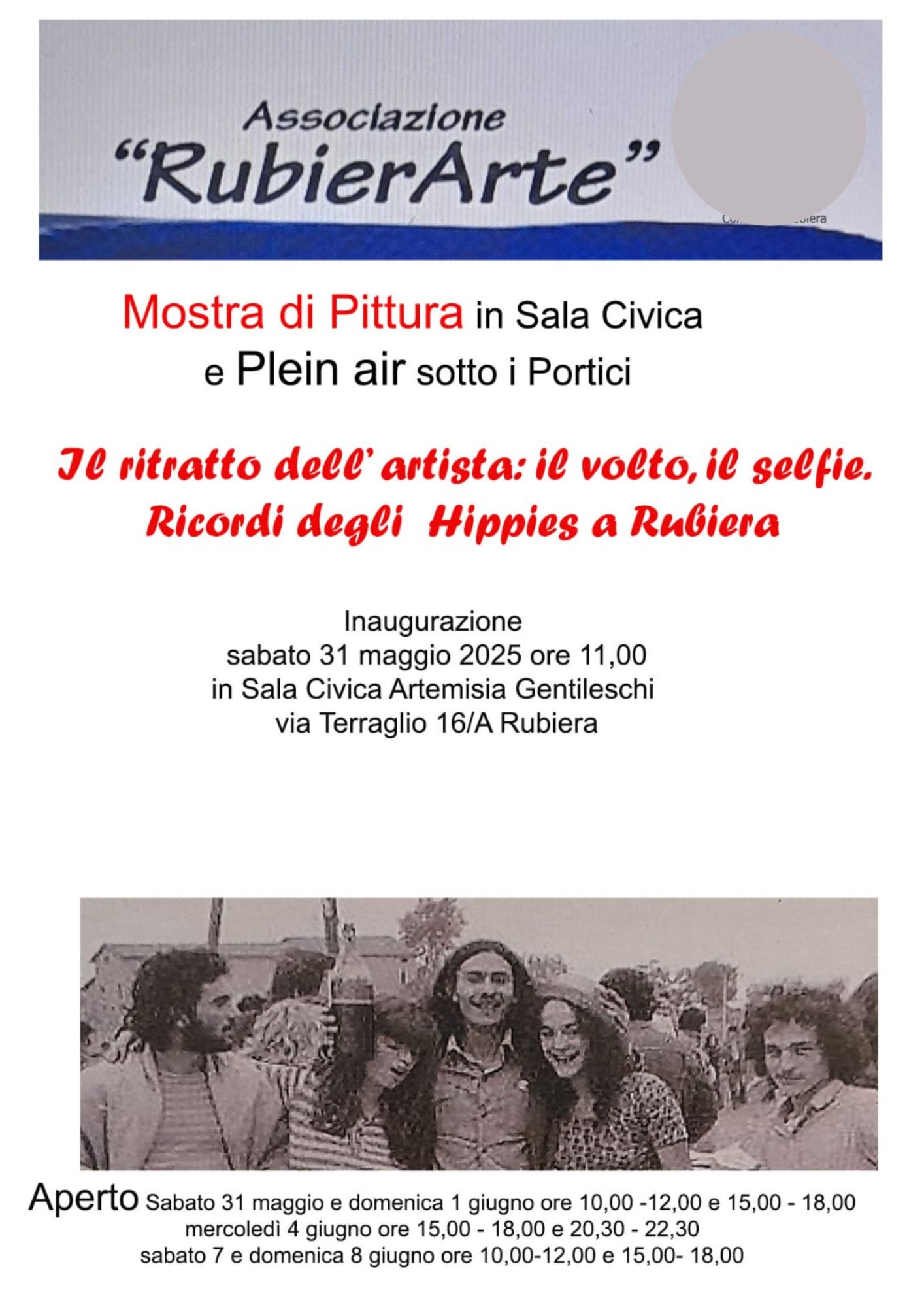 Nel 1975 Rubiera ospitò un raduno di Hippies sulle sponde del Secchia: l'Associazione RubierArte ha realizzato una mostra di pittura per ricordare l'evento