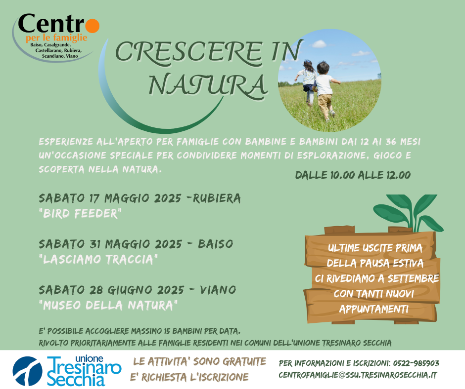 📌 È richiesta l’iscrizione chiamando al 0522 985903 o scrivendo a centrofamiglie@ssu.tresinarosecchia.it