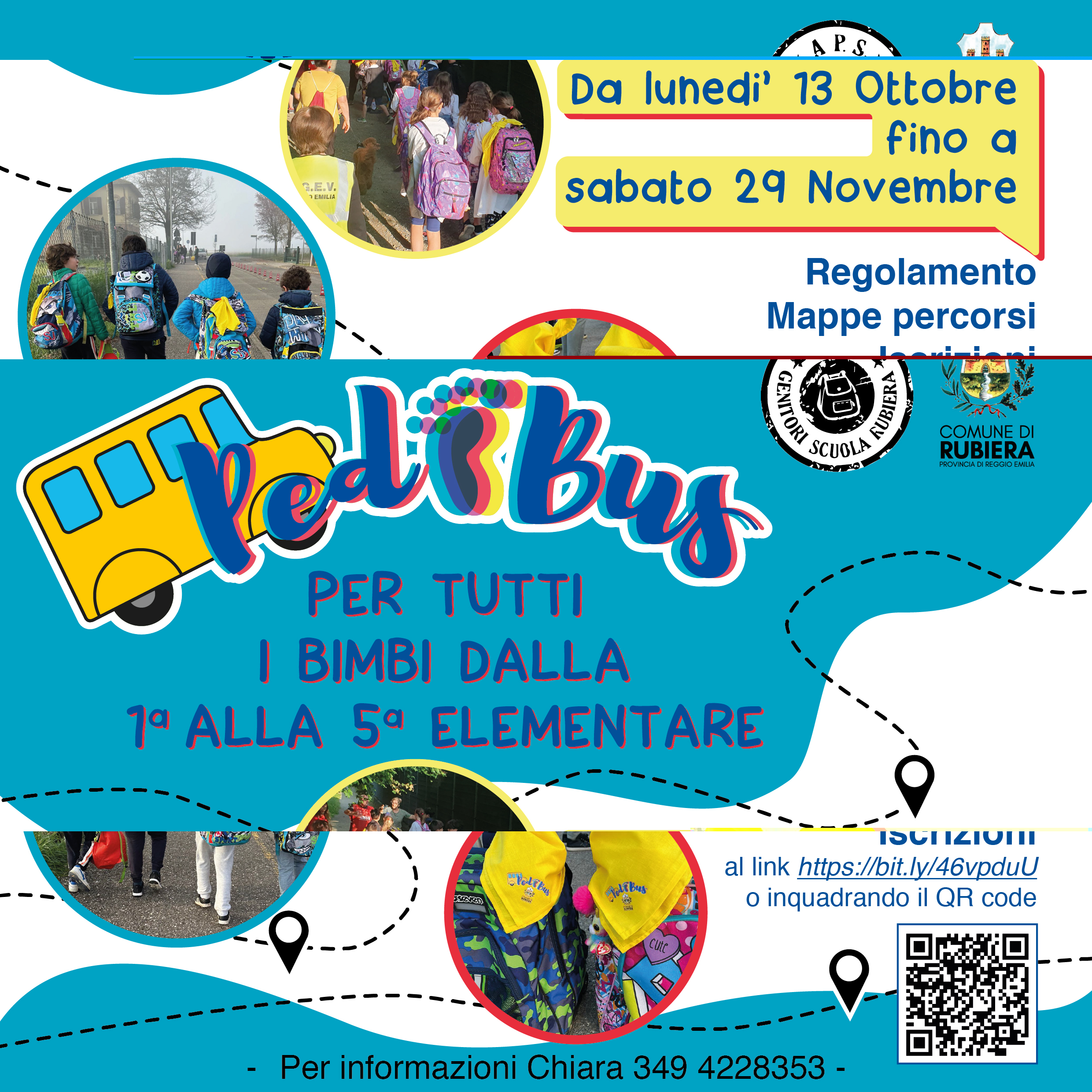 Anche nel corrente a.s. 2025/2026, grazie alla collaborazione dell’APS Comitato Genitori Rubiera e al supporto delle associazioni di volontariato, viene riproposto il Pedibus, che partirà dal 13 ottobre e proseguirà fino a sabato 29 novembre