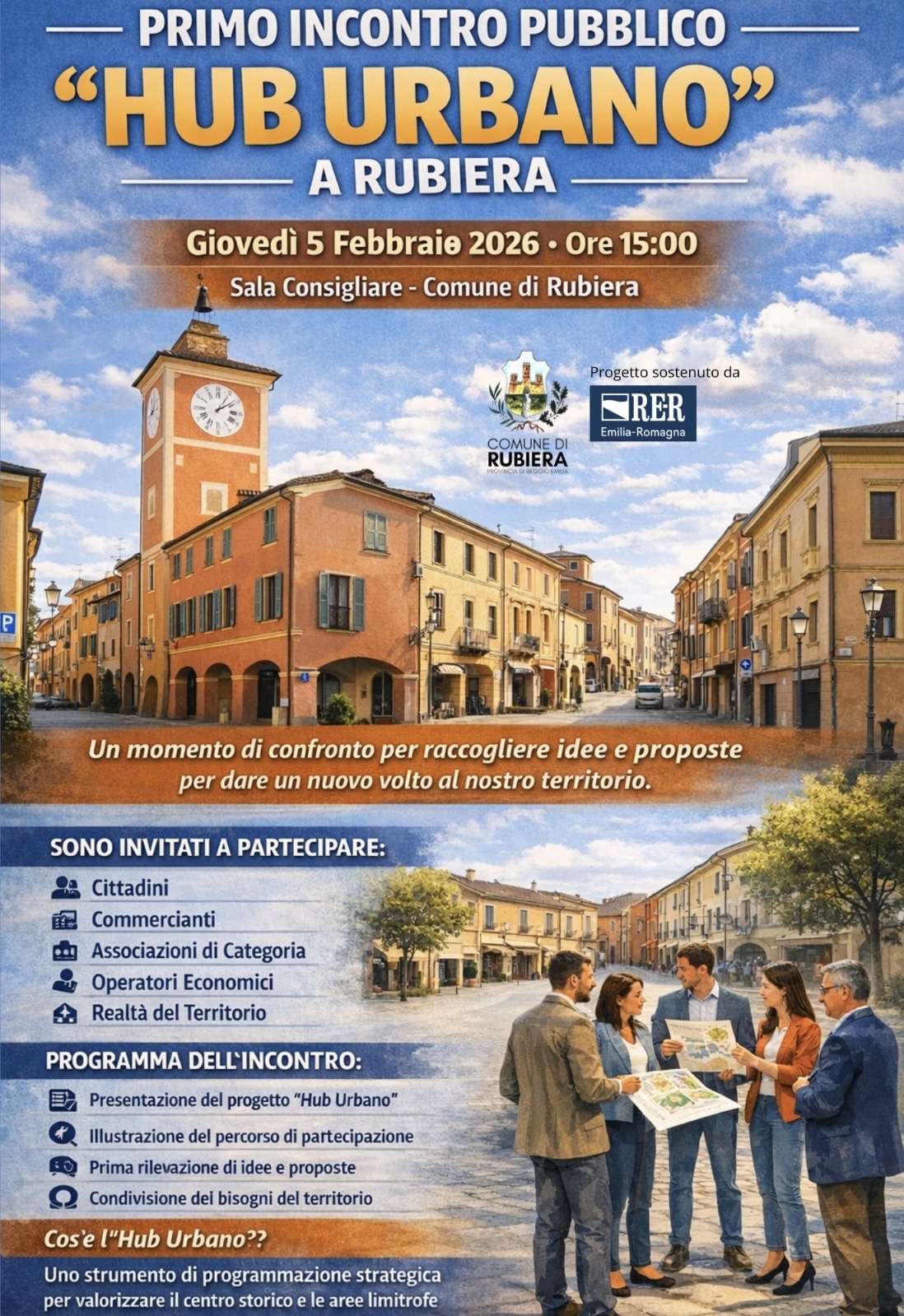 Si terrà giovedì 5 febbraio il primo incontro pubblico dedicato alla presentazione dell’ “Hub urbano” a Rubiera.