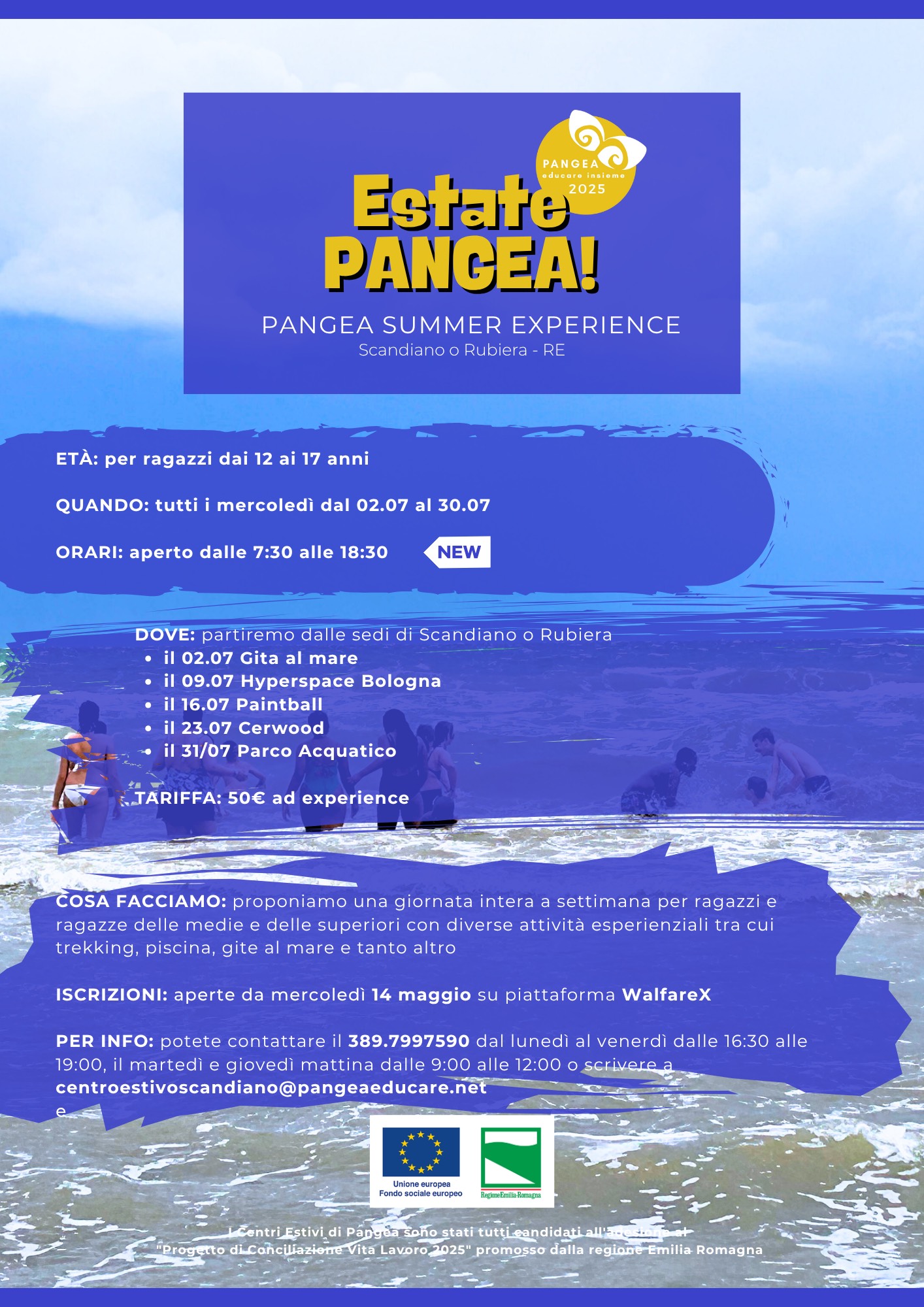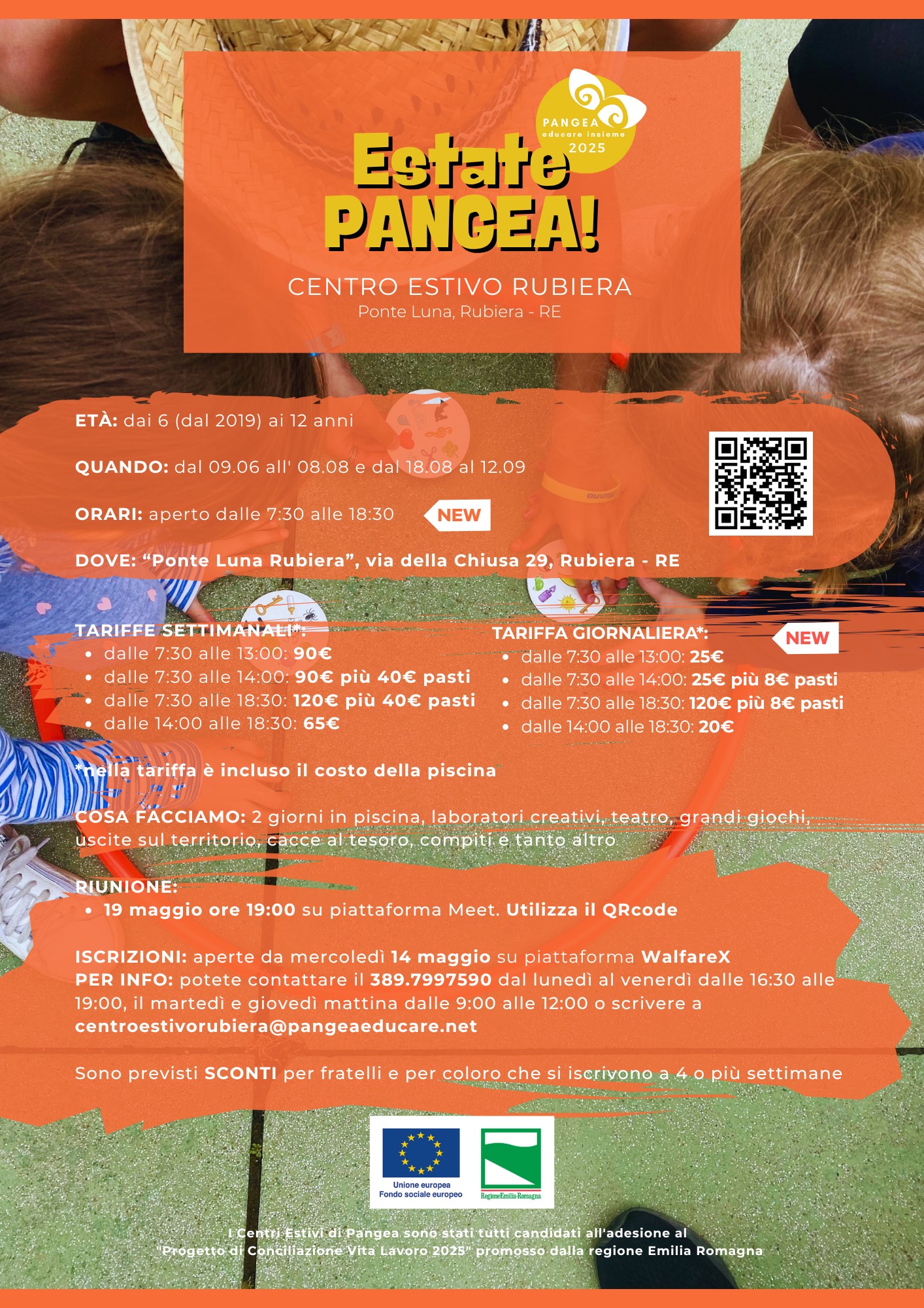 7 Luglio all’8 Agosto, per bambini dai 6- ai 13 anni pressol'impianto sportivo Valeriani di Rubiera, Via Mari, 8Locandina; Locandina informativa - Estate Pangea!