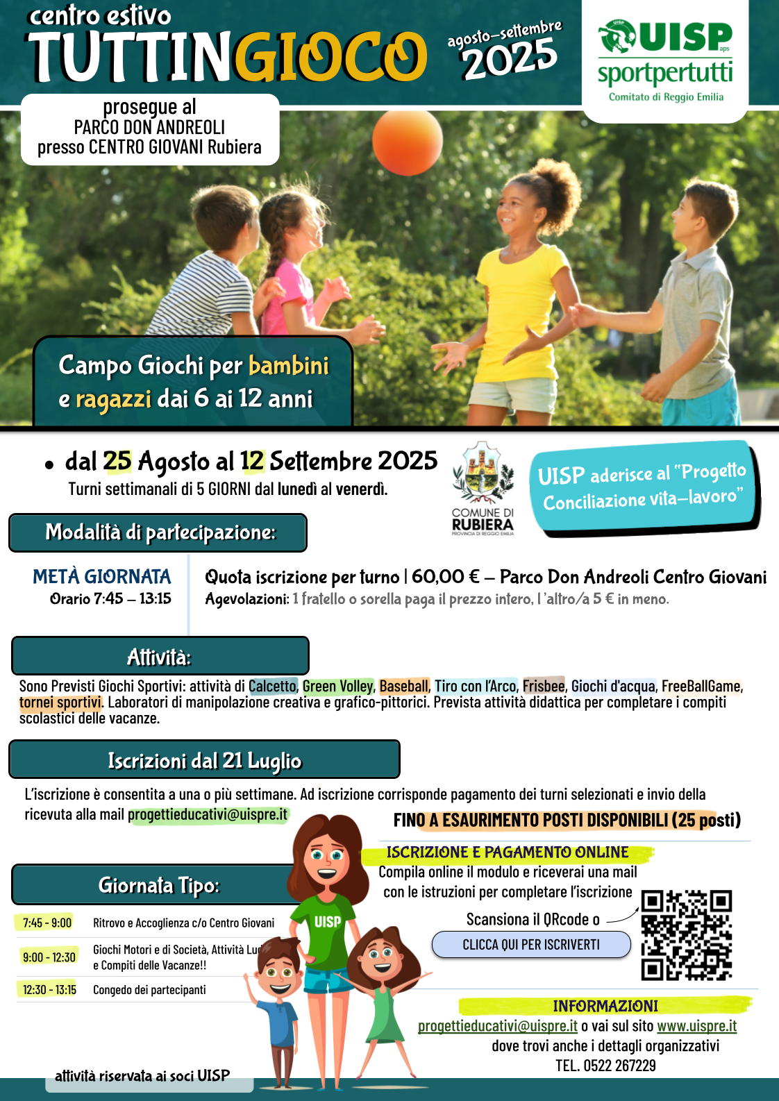dal 1° luglio al 1° agosto, per bambini e bambine che hanno frequentato i nidi e le scuole dell’infanzia di Rubiera nell’a.s. 2024/2025