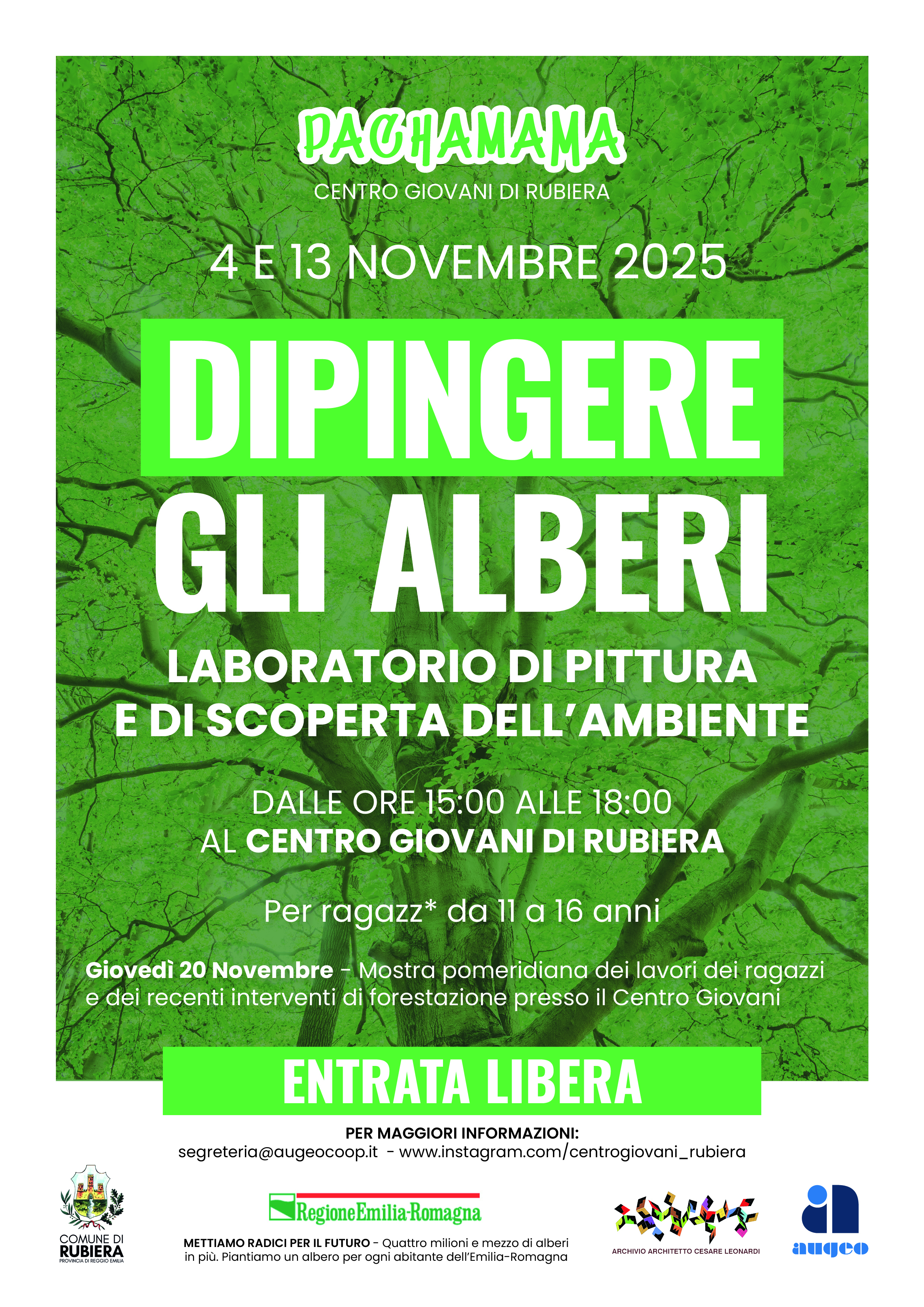 Lo scopo del laboratorio al Centro Giovani Pachamama (parco Don Andreoli) è stimolare la capacità di osservazione e di riflessione sulla natura, con l’attività di pittura dal vero, ispirandosi alla ricerca sugli alberi condotta dagli architetti Franca Stagi e Cesare Leonardi.