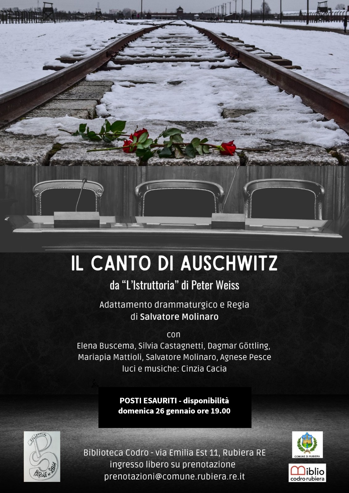 "Il Canto di Auschwitz" non è una semplice ricostruzione storica, ma un'esperienza teatrale intensa e coinvolgente che scava nell'orrore del lager nazista, partendo dall'opera di Peter Weiss, L'istruttoria, basata sul Processo di Francoforte (1963-1965) contro 22 imputati accusati di crimini commessi nel campo di concentramento di Auschwitz tra il 1940 e il 1945. Lo spettacolo trasforma la fredda documentazione processuale in un'intensa performance, unendo le testimonianze dirette di sopravvissuti e aguzzini. Le voci dei testimoni che raccontano la deportazione, ci conducono nel cuore del lager, dalla drammatica esperienza dell’arrivo sino alla crudele quotidianità, alle selezioni spietate, alle malattie, alla fame, alla disumanità. La perdita di ogni dignità e speranza, i momenti di cruda realtà si contrappongono alle giustificazioni e il cinismo degli imputati, alla loro incapacità di comprendere appieno la gravità dei crimini commessi. Il linguaggio teatrale combina dialoghi intensi con musiche e cori per creare un'atmosfera che trasmette sia la brutalità del lager sia la forza della resistenza umana, dipingendo un quadro agghiacciante e indelebile della deumanizzazione e della violenza sistematica, che ci invita a confrontarci con il passato e a riflettere sul valore della memoria.