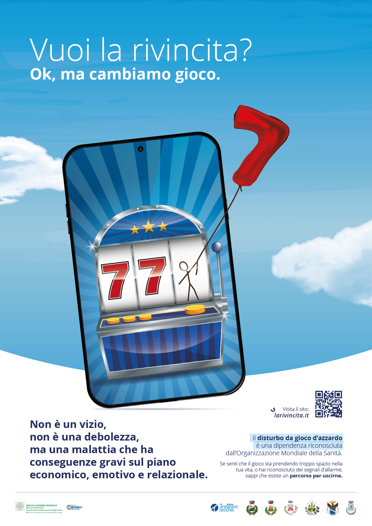 Per il disturbo da gioco d’azzardo è previsto un Percorso Diagnostico Terapeutico Assistenziale dedicato: questo significa che il Sistema Sanitario riconosce la patologia e offre cure specialistiche gratuite all’interno del SerDP (Servizio per le Dipendenze Patologiche) di Scandiano (RE).